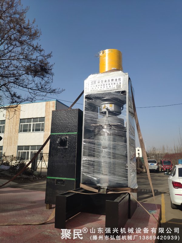 新疆和田地區(qū)策勒縣的60MPa(300噸壓力)新型全自動液壓核桃榨油機(jī)發(fā)貨。